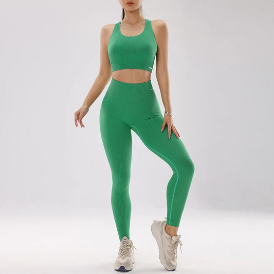 Ensemble de yoga moulant en tricot sans coutures, couleur unie, haute élasticité
